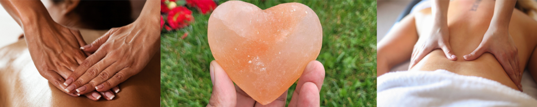 • Heated heart-shaped salt stone applied to neck, shoulders, and back