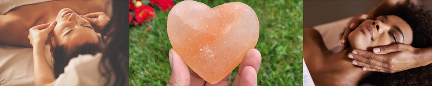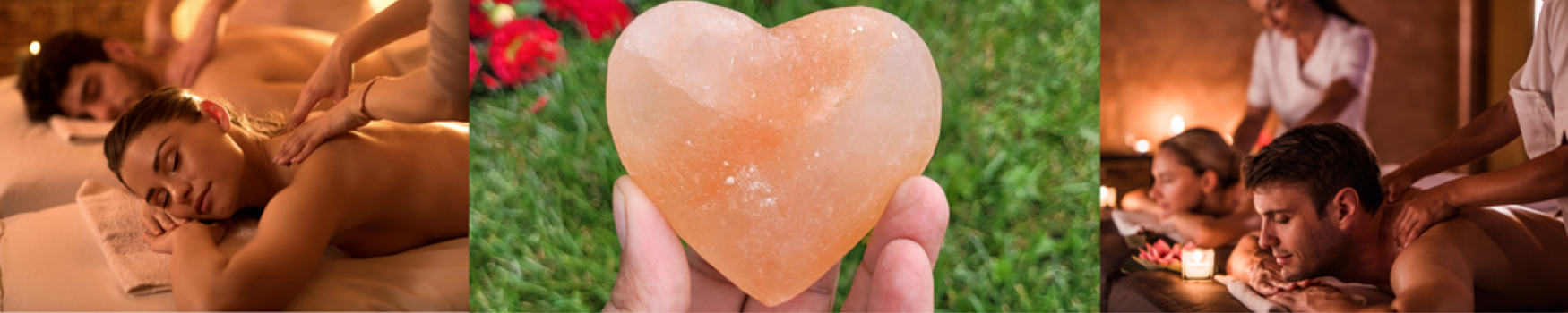 • Heated heart-shaped Himalayan salt stone applied to neck, shoulders, and back